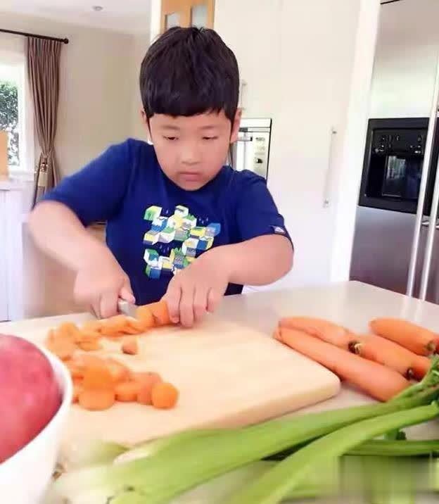 想必大家还记得,石头在节目中说过最喜欢吃蛋炒饭和方便面。如今,石头已长大,在厨房切菜有模有样。厨房整体空间采用白色设计,视觉上清爽大气。各种设备齐全,多为镶嵌式设计,美观又实用。没想到,石头已能帮父母做家务了。