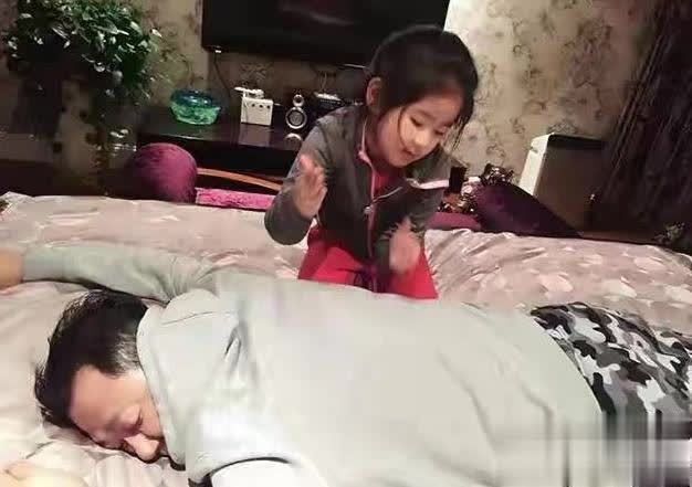 郭涛堪称人生赢家,一儿一女贴心懂事。照片中,女儿为爸爸捶背,画面温馨。卧室墙面选用印花壁纸,大气美观。